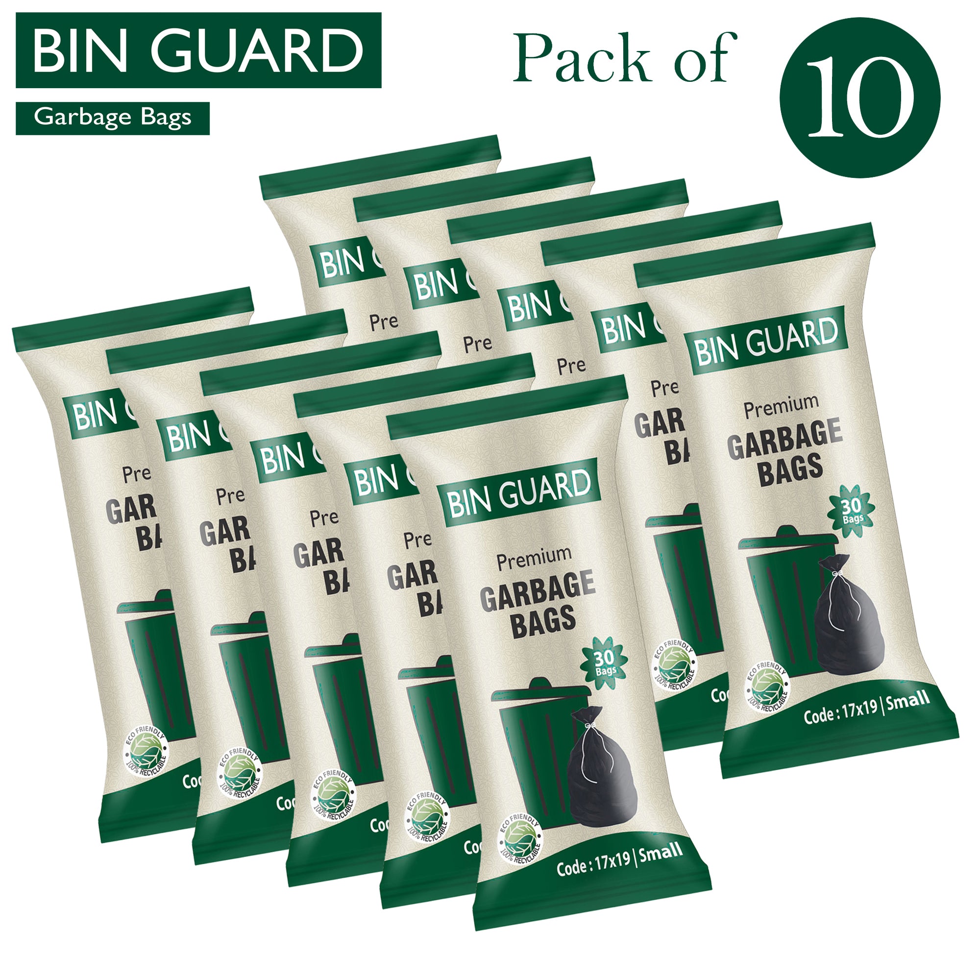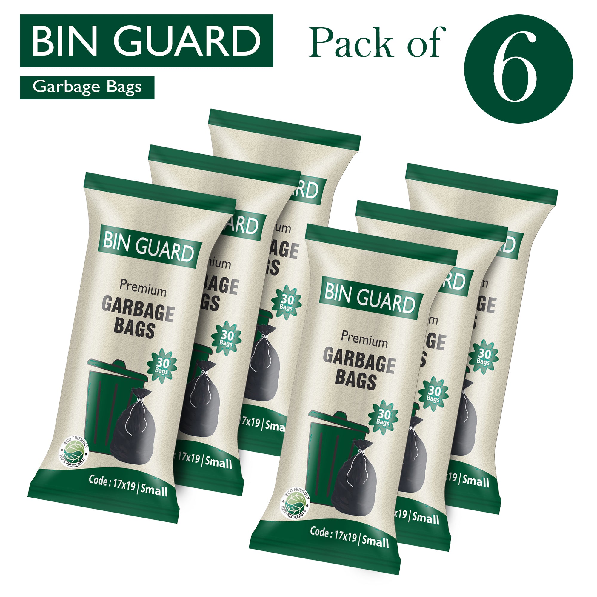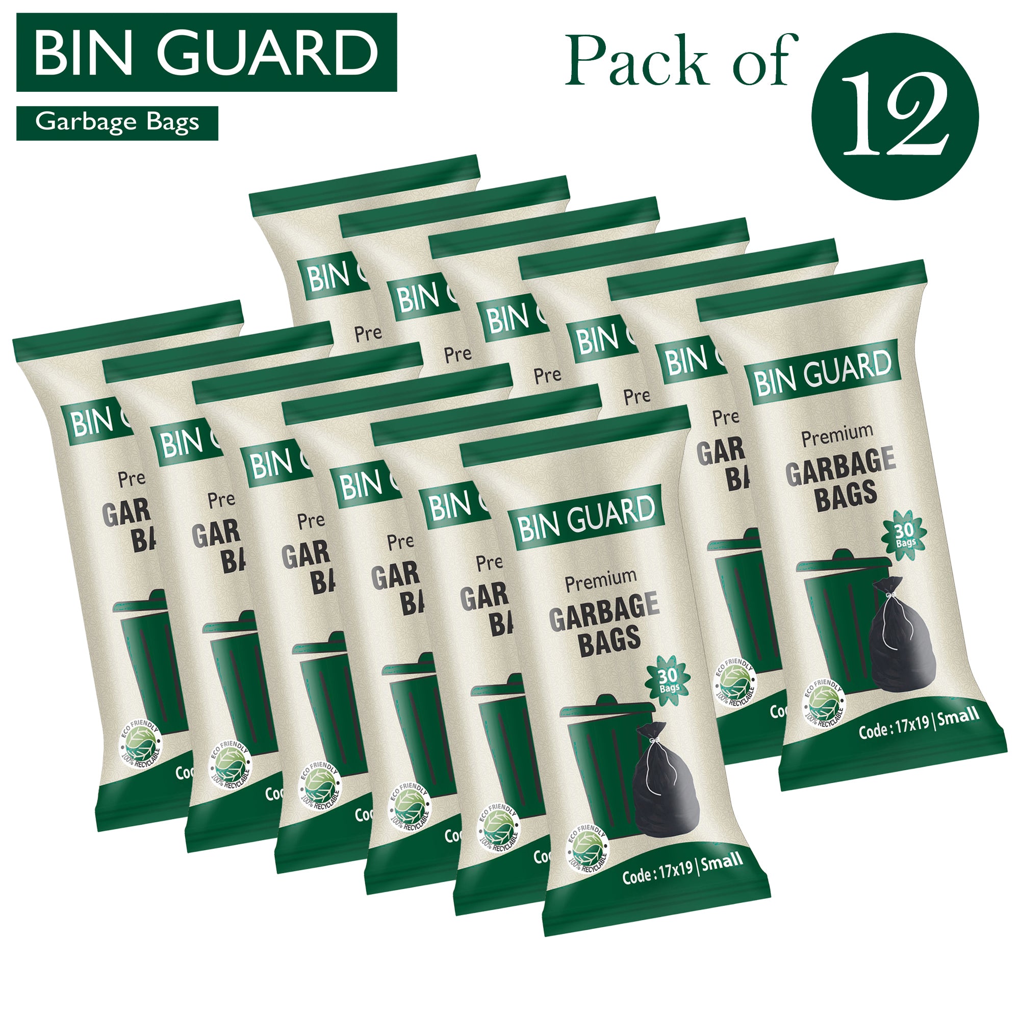 Keep your space clean and hygienic with Bin Guard Premium Garbage Bags. Designed in a small 17x19 size, these bags are perfect for household bins, office dustbins, kitchens, and daily waste collection. The bags are strong, durable, leak-resistant, and made from 100% recyclable, eco-friendly material, ensuring responsible waste disposal.