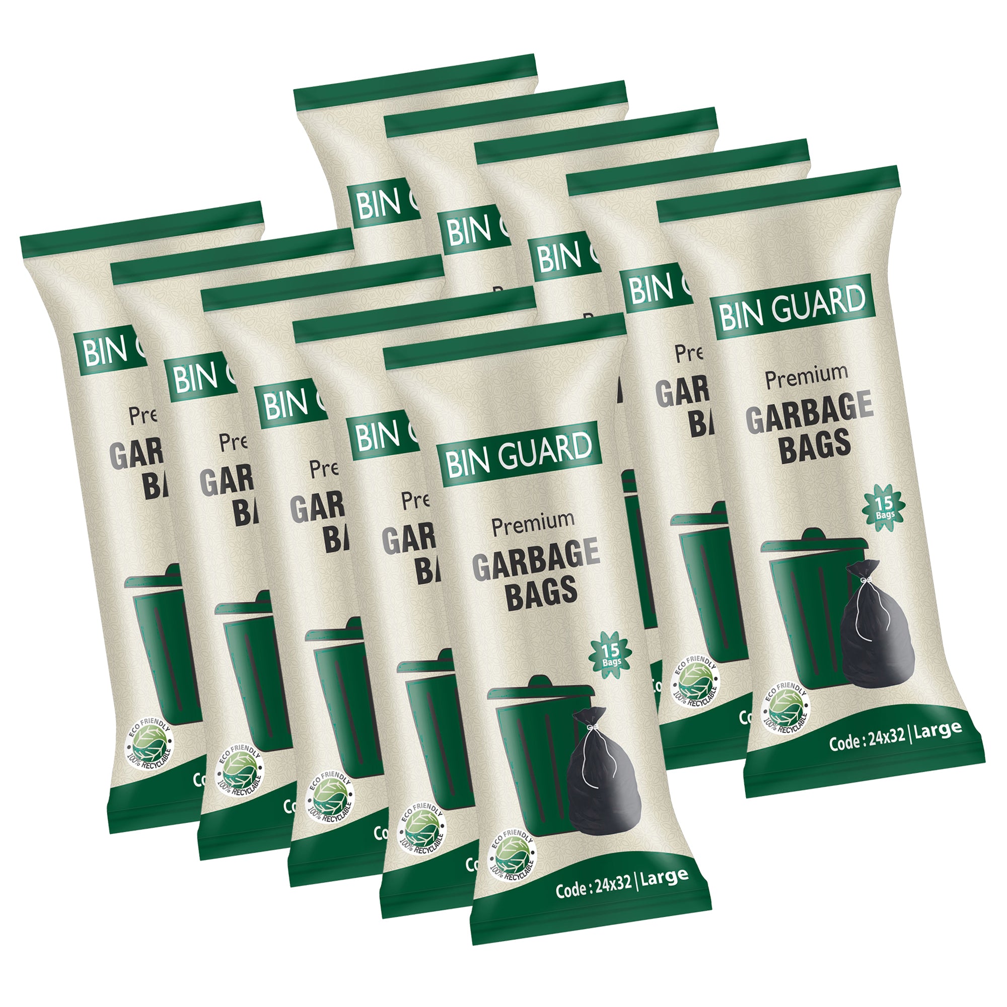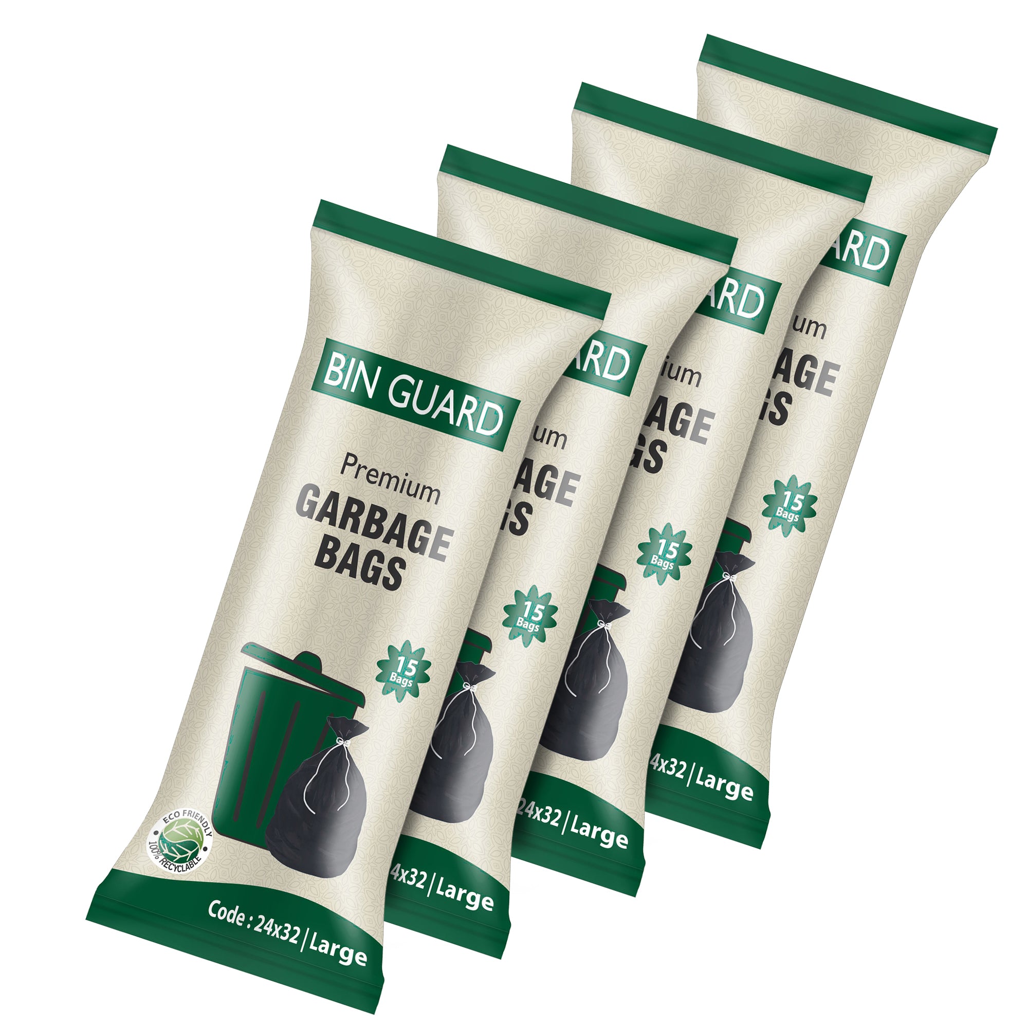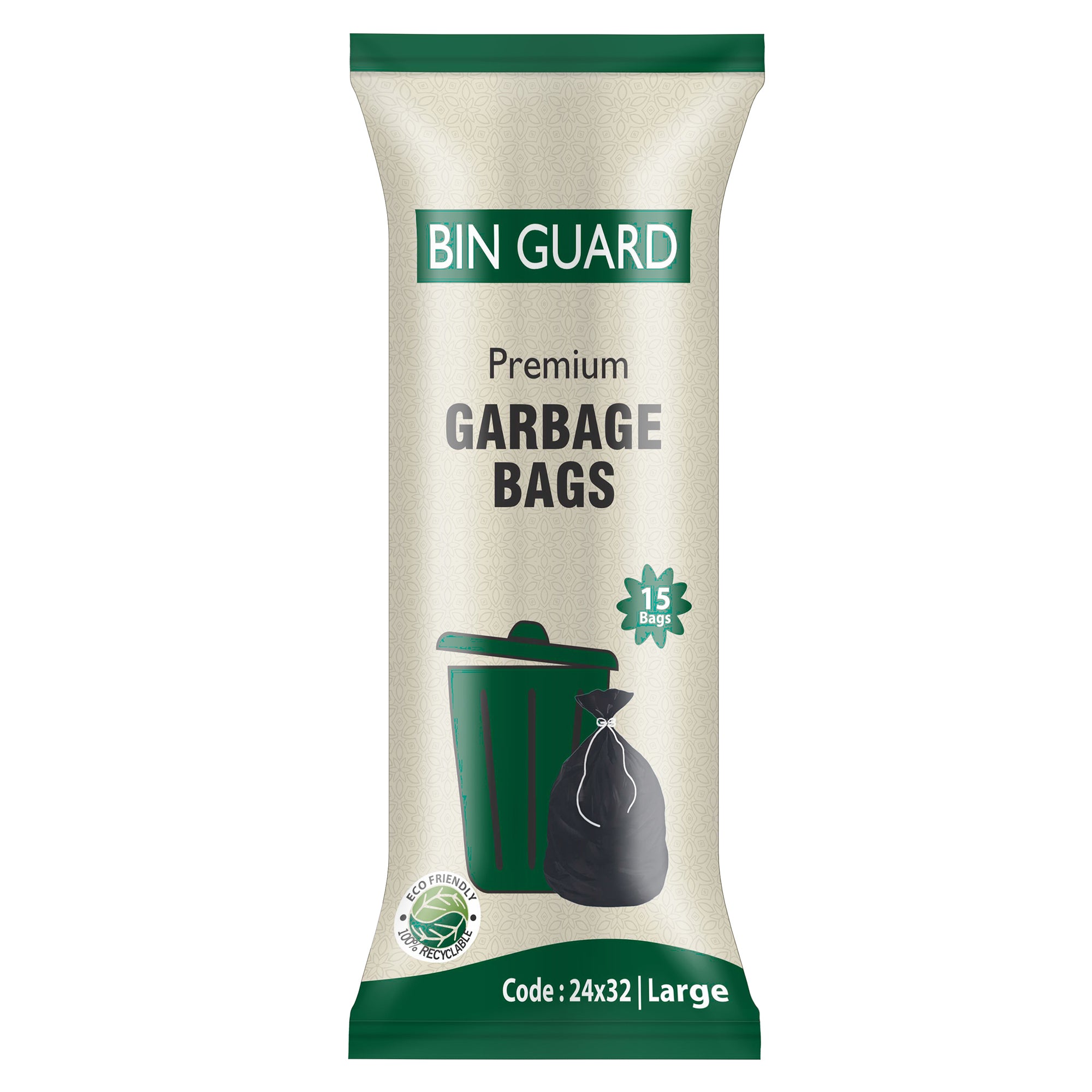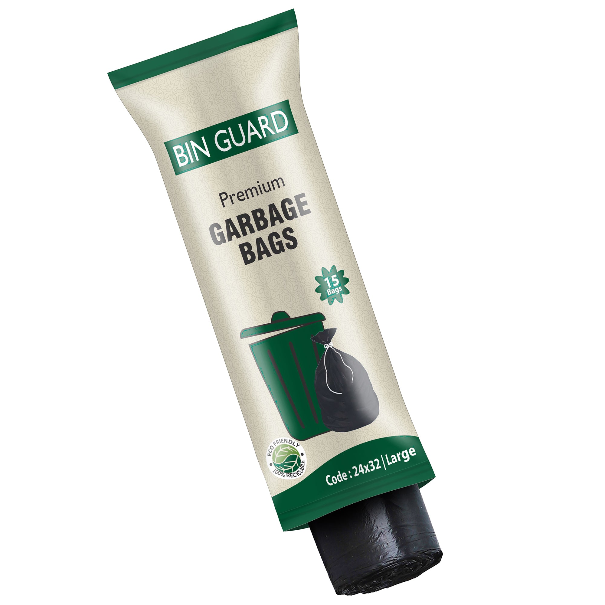 Experience heavy-duty waste management with Bin Guard Premium Extra Large Garbage Bags. Designed in an oversized 30x37 inch format, these durable black bags are ideal for large bins, commercial spaces, outdoor cleaning, garden waste, hotels, restaurants, societies, and industrial use.